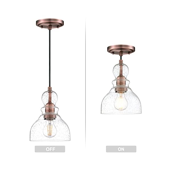 2 Pack Industrial 1 Light Adjustable Mini Pendant Ceiling Light with RB2 Handblown Transparent Seeded Glass